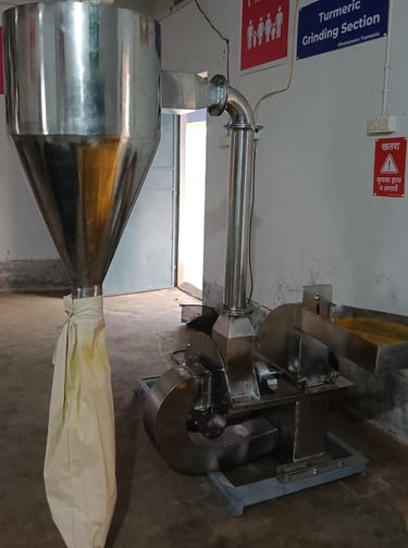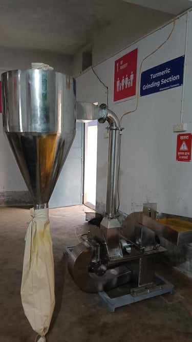 A new and advanced grinding machine has been procured to improve the efficiency and consistency of turmeric powder production. This machine offers improved fineness of the turmeric powder, ensuring better-quality output.